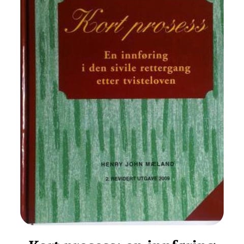 Henry John Meland Kort prosess lærebok innen rettsvitenskap. Boken gir en innføring i den sivile rettergang etter tvisteloven. 3. reviderte utgave fra 2013, utgitt av Justian AS. Inneholder informasjon om prosessregler og sivilrettslige prosedyrer.