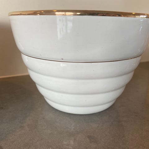Blomsterpotte med blomster motiv, høyde 12 cm, diameter 15 cm, god stand.