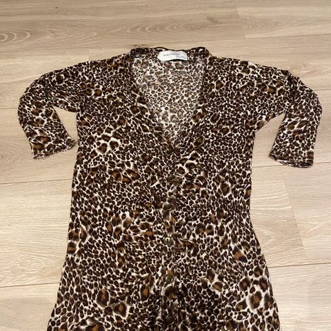 Svart og gullfarget cardigan i leopardmønster fra M&S. Str 42. Cardigan er i god stand.
