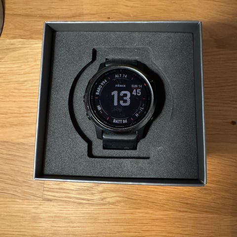 Selger en Garmin Fenix 6 Solar i pen og fullt fungerende stand. Dette er en solid og avansert multisportklokke, perfekt for trening, friluft og hverdagsbruk.