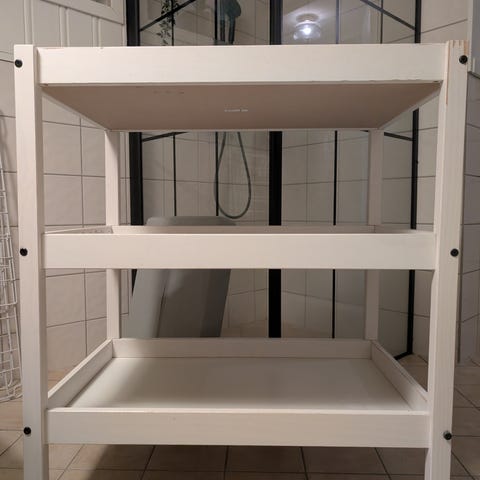 IKEA Sniglar stellebord i tre, med mål 72 cm bredde, 53 cm dybde og 88 cm høyde. Brukt i 6 mnd. Selges grunnet flytting, og ikke lenger behov for stellebord.