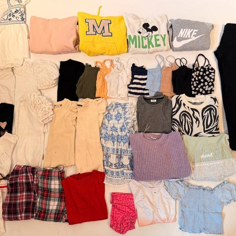 Cubus flerfarget jente klær i størrelse 146. Inneholder ulike plagg med forskjellige farger og materialer, egnet for jenter i 146/152 størrelsen.