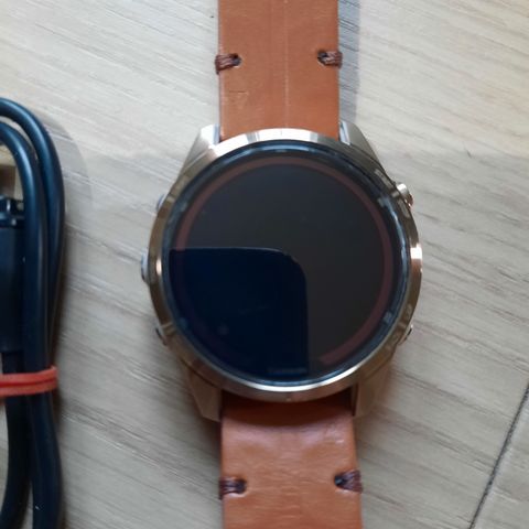 Garmin Fenix 7S smartklokke rose gull med beige silicon også lær reim. Original eske og ladekabel følger med.Klokken har flere funksjoner for trening og aktivitetssporing, og er designet for både utendørs og innendørs bruk. Passer for brukere som ønsker en funksjonsrik smartklokke.