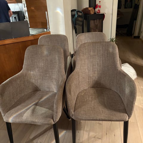 To av stolene har trekk, teppet følger med,selges samlet 600 kr