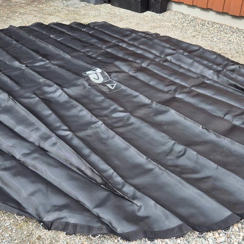 En vel brukt trampoline-duk som passer alle rammer som er 5.2 x 3.1 m, EuroTramp olympisk størrelse. 30 st fjær inkludert.