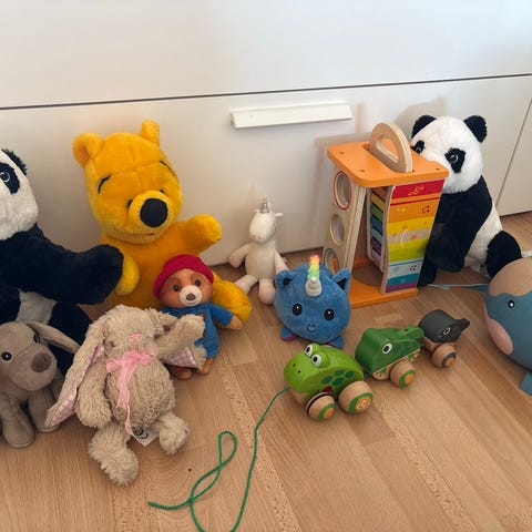 Har en del bamser i forskjellige størrelser.
