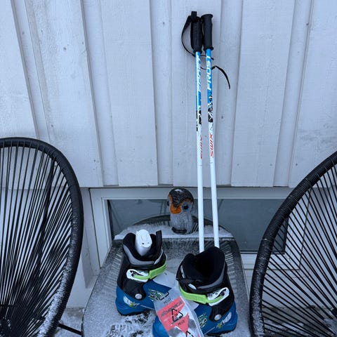 Nordica alpinsko for barn, str 28-30 eller 180-195 mondo. Sålelengden er 235mm. Synlig brukt, men masse sko igjen.