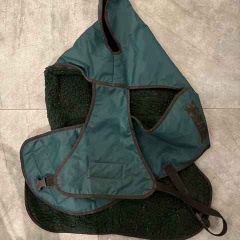 Hundedekken 32 cm. Vasket men sitter litt hår på undersiden som ikke gikk bort i vask. Wather Proof.