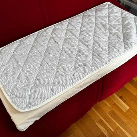 Pent brukt madrass for barn 108x 54 cm og 9 cm tykk og leveres med ekstra rosa trekk laken fra princess