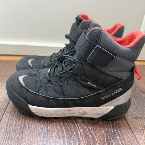 Viking barn vintersko i størrelse 37,. Skoene er svarte og egnet for vinterbruk, med isolasjon og robust såle for godt grep på vinterføre.