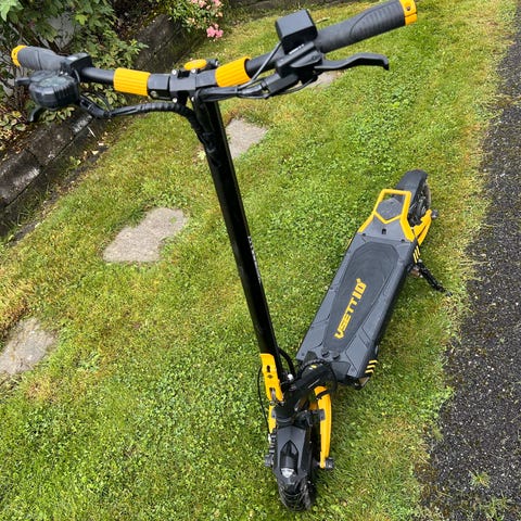 Den mangler fram brems og den ene ladeporten virker ikke pga dårlig kontakt mellom kontakt og batteri.