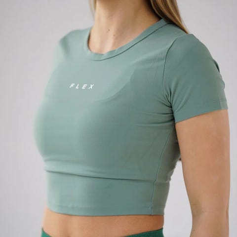 Flexwear Opule Scrunch Tee i fargen Cherry Red, størrelse XS. Helt ny, tok kun lappene av, men aldri brukt. Utgått farge, selges ikke lenger. Har ingen bruksmerker.