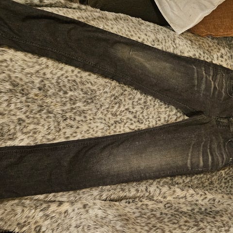 Originale Gucci-jeans i en lys beige/off-white tone. Klassisk femlommemodell med rett til svakt utsvingt ben. Tidløs silhuett som fungerer like godt minimalistisk som stylet mer markant.