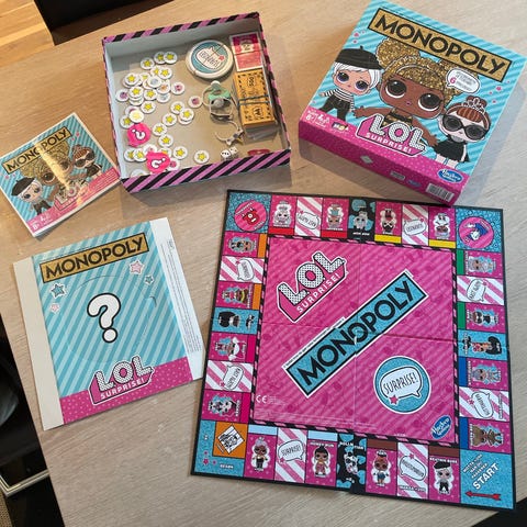 Selger et komplett Monopoly: L.O.L. Surprise! brettspill – en søt og morsom versjon av det klassiske Monopol-spillet med tema fra L.O.L. Surprise! dukker.