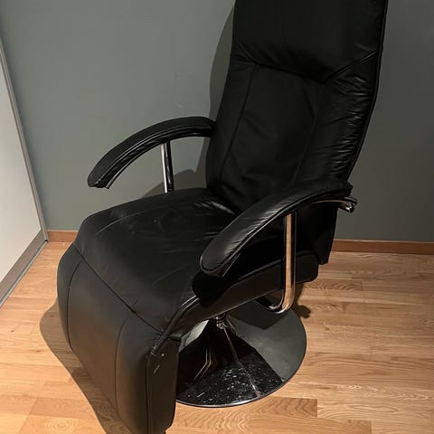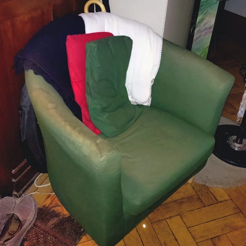 Grønn lenestol gis bort. Den har et par flekker på trekket