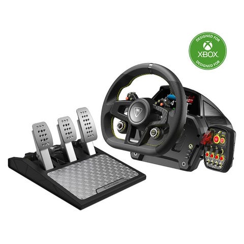 Logitech G Saitek Farming Simulator pakke med tilhørende pedalsett og kontrollpanel med flere knapper og joystick. Utstyrt med ratt, gass- og bremsepedaler, samt et kontrollpanel med fargede knapper og joystick for avansert kontroll. Passer til bruk med PC og kompatible spillkonsoller. Ratt, pedal og kontrollpanel er nesten ikke brukt, mens standen den står på er litt brukt.