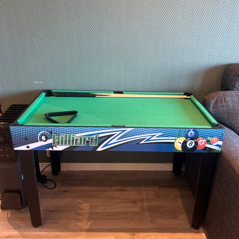 Kompakt spillebord med biljard, "lufthockey", bordtennis og bordfotball.