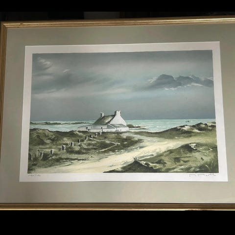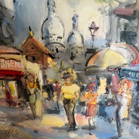 Innrammet bilde med motiv fra Rossi's Diner, viser en klassisk bil i rødt mot en svart-hvitt bakgrunn. Rammen er sølvfarget.