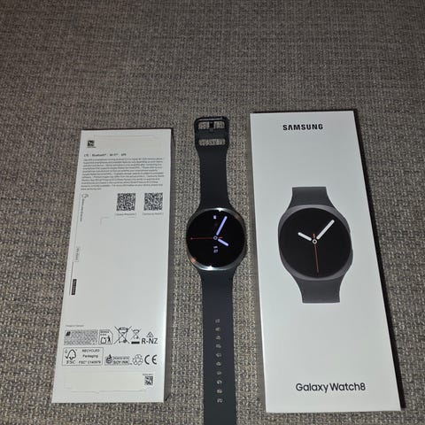 Uåpnet Galaxy S25 og Samsung Galaxy Watch8