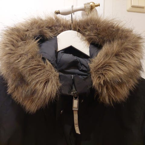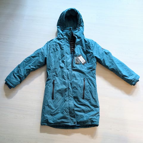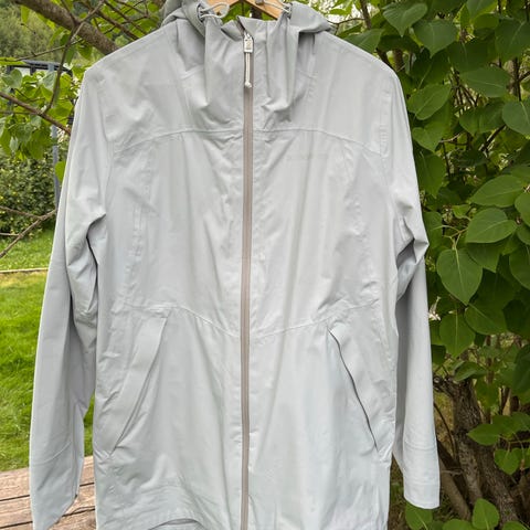 Varm og god jakke med mange lommer, stor hette, vannavvisende, veldig god og ha i ruskevær, både regn og snø og vind. For stor for meg. Kjøpt brukt for 150kr, brukt en sesong av meg.