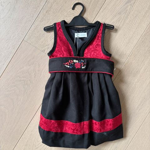 Komplett / bunad for baby størrelse 68/74/80 for jente, svart og rød farge. Inkludert bunadsko for baby/ettåring i størrelse 21 og 22.