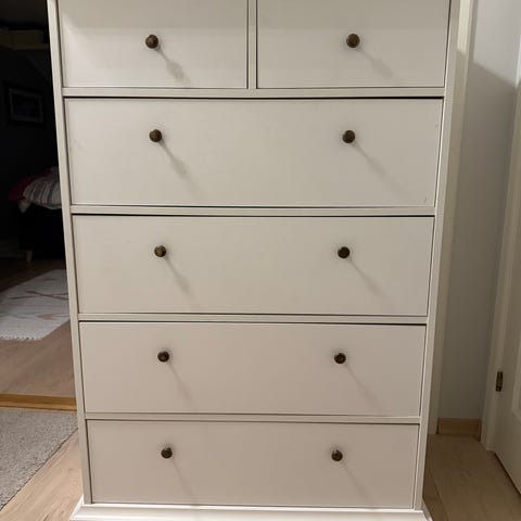 Brun kommode med to skuffer og en hylle gis bort. Trenger litt puss og stell så blir den som ny
