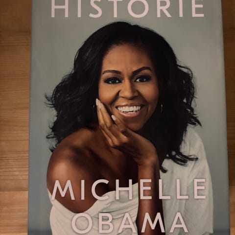 MICHELLE OBAMA - 1 meget stor og flott bok «MIN HISTORIE» 1 utgave, 1 opplag 2018. Høyde 23,5 cm, bredde 15,5cm. 1 meget stor og tung bok, har 480 sider, veier 825 gram!! Cappelen Damm Forlag 1 utgave, 1 opplag 2018. Boken er meget flott innbundet i grått og med omslag. Omslaget har noen få bruksmerker. Selve boken fremstår som Meget fin!! Se alle bildene! Boken har flere flotte bilder!! Boken kan sendes, eller hentes her i Sandefjord, eller avtale henting i Tønsberg på Tolvsrød. Kan også sende med «helthjem», koster kr. 82,-, inntil 5 kg! Forsikret og med sporing.