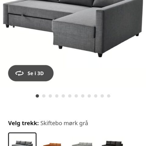 Gjøres veldig enkelt om til en sovesofa. Har også egen oppbevaringsdel til sengetøy o.l. Beskyttelsestrekk til sovesofa medfølger.