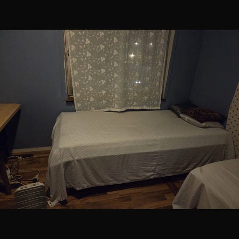 Overmadrassen har noe misfarging, og noe knirk, men ikke noe litt stramming av muttre kan fikse. Sengen må hentes i 3. etg uten heis.