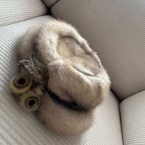 Flott vintasje ekte pelslue for kvinner H: 18 cm selges