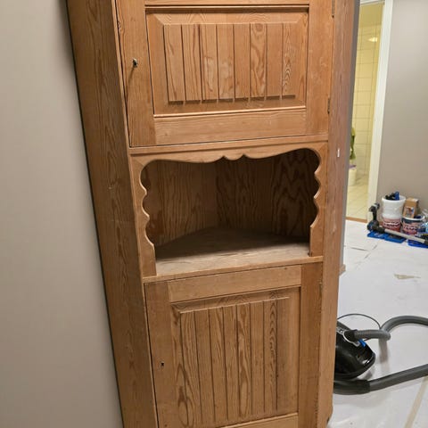 Vitrine hjørneskap gis bort mot henting.