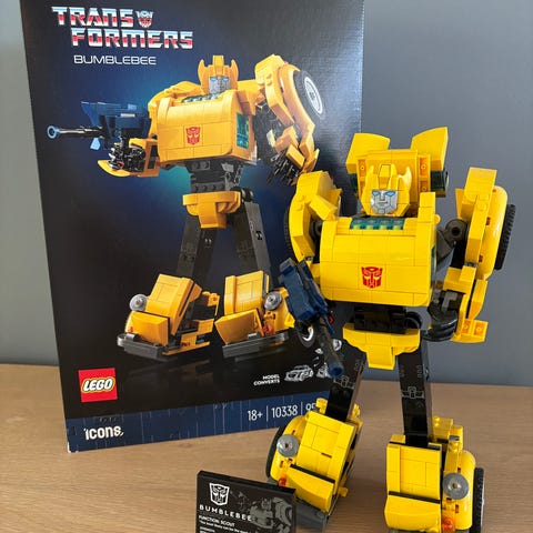 Ny, det vil si uåpnet, LEGO Icons 10338 Bumblebee Transformer som kan bygges om til en gul bil eller en robotfigur.