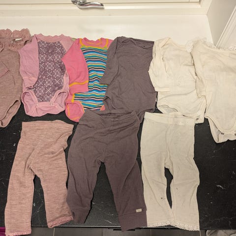 Røde dressen ved nøstebarndressen er i str. 62/68.