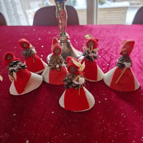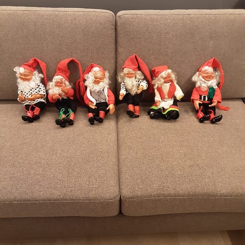 Selger diverse julepynt, mest nisser.
