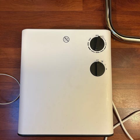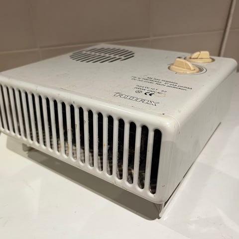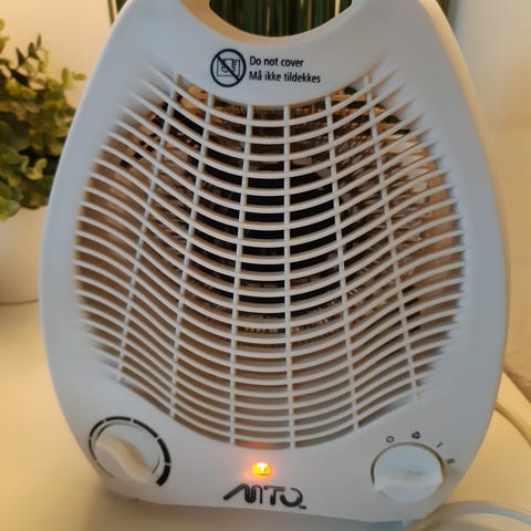 To små varmeovner - 20 cm høy, 13 cm bred. Vifteovner. Ingen termostat eller regulering, bare av/på knapp bak.