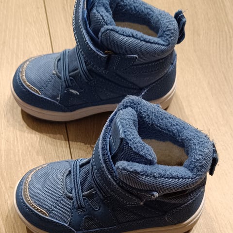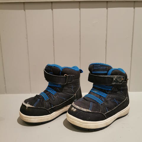 Move Mountains barnevintersko i størrelse 24. Skoene er unisex og har en blå og oransje fargekombinasjon. De er laget for å gi varme og komfort til barn i vinterhalvåret. Sønnens føtter har vokst ut av disse før han fikk brukt de, så hatt på seg en gang til barnehagen hvor de har blitt stående ubrukt i hele høst, så disse fremstår som nye! Sålen har et utrolig godt feste, og sitter solid på eventyrlystne små barn 🙂