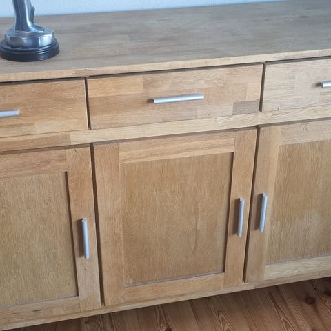 Kjøpmannsdisk i furu, heltre, selges billig.