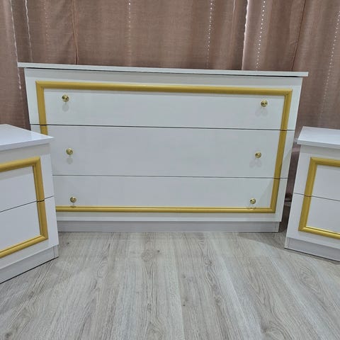 Kommode og to nattbord, lys rotting