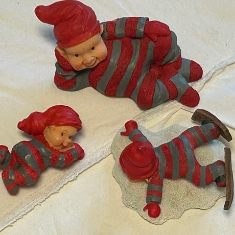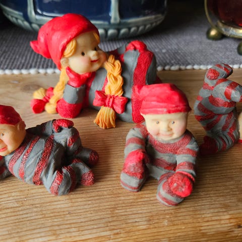 Sjarmerende nisser fra Pobra. Nissebarn med popcornkopp, hel og fin, målene er 17 x 16 x 12. Pris 275.-