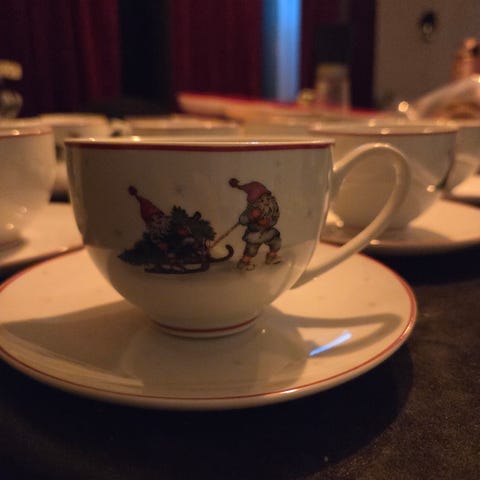 Har fått serviset til jul i mange år så de har litt forskjellige farger nyanser på selve motivet. Se bildet