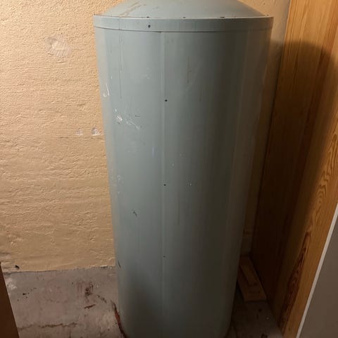 Varmtvannsbereder fra 2008, 198l. Fungerer fint. Byttes i forbindelse med oppussing.