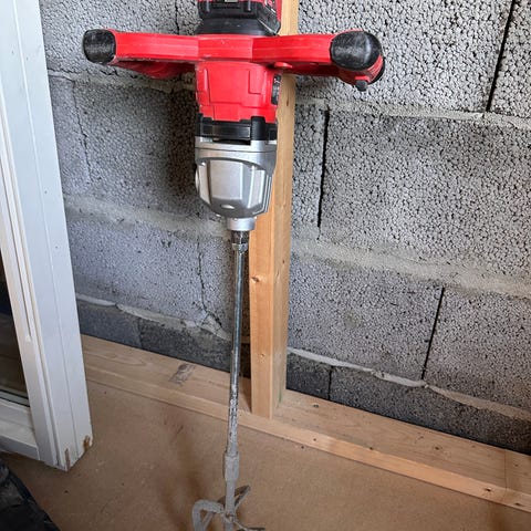 Mjølner mørtelblander med 1400 watt effekt, utstyrt med to gir og to stk 120 mm visp.