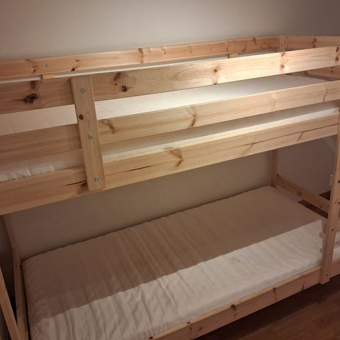 Køyeseng lys lilla, med to madrasser