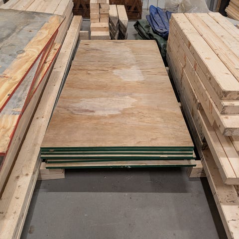 Kryssfiner platen har en brun blank overflate, ru bakside og kan brukes til tilhenger, ulike bygge- og snekkerprosjekter