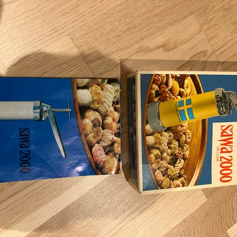 GAMMEL FIN KREM-/ KAKESPRØYTE SOM LIGGER I ORIGINALESKEN.