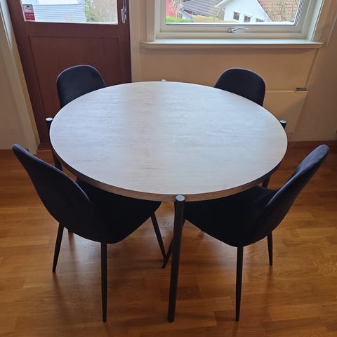 Som nytt spisebord rundt , dansk design husker ikke merket , kostet mye