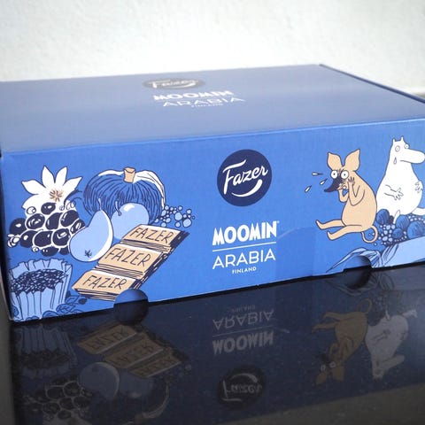 Fazer x Moomin 80th Anniversary Box er en unik gave lansert av Fazer i samarbeid med Moomin Characters og Moomin Arabia. Gaveesken inneholder en skål og sjokolade.