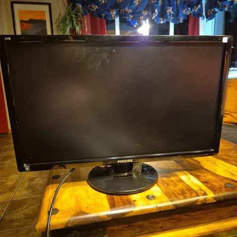Skjerm til salgs. Passer fint til hjemmekontor. Alt av kabler inkludert. 400 kr