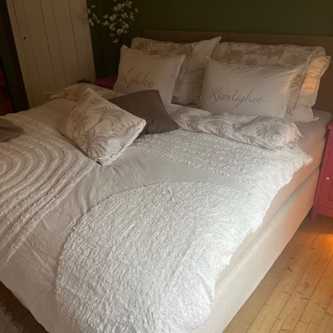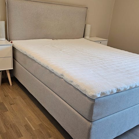 Oslo kontinentalseng 150x200 cm i tekstil Mito 40 lys grå er til salg til en god pris. Ut av hele senge kun madrass og overmadrass er i bruk resten fortsatt står i original pakninger. Denne varianten leveres med en 8 cm tykk Oslo overmadrass og med sorte ben. Vi kjøpte ny fra skeider for gjesterom i juli men endret behov. Ny seng koster 13999 i lysgrå farge men jeg selger billig for 5990
