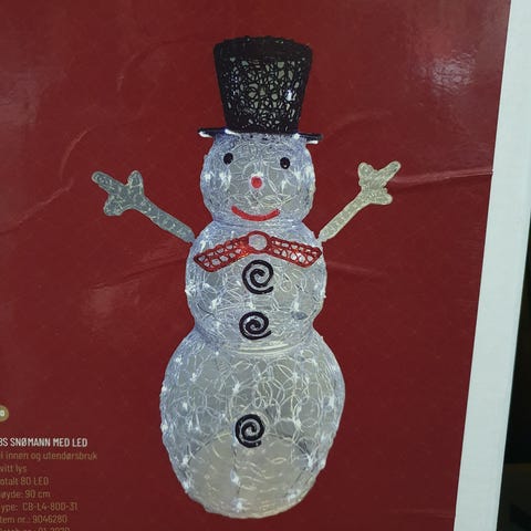Sammenleggbar snømann, 90 cm høy. En unik julefigur å pynte i huset med.